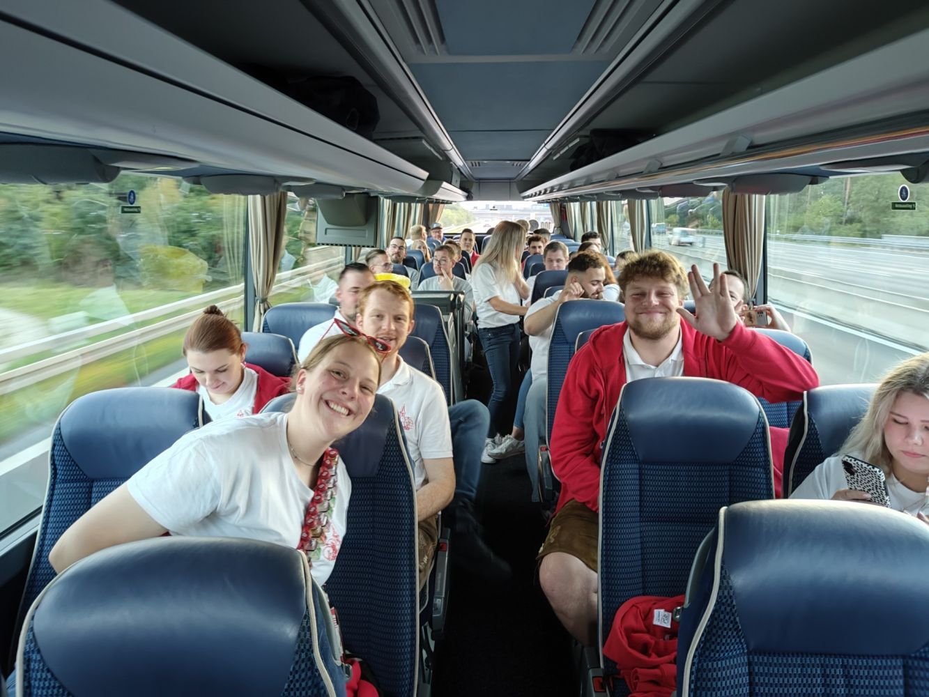 Zirka 30 feierlustige Kerwaboum und Madli haben sich also dann am Samstag gegen 18 Uhr an der Tankstelle Wurzer getroffen um mit dem Busunternehmen Böhm aus Obererlbach in die Fränkische aufzubrechen.