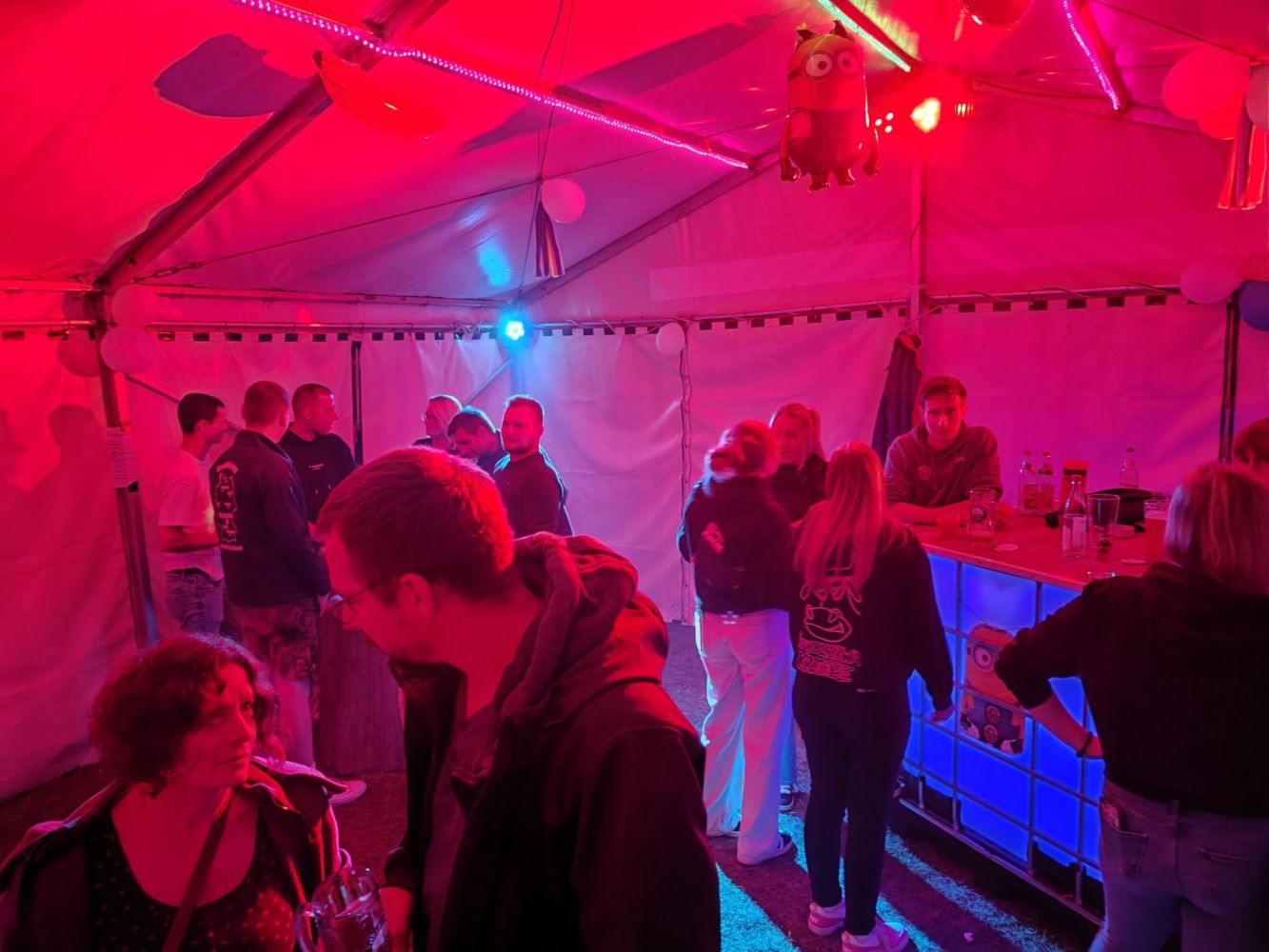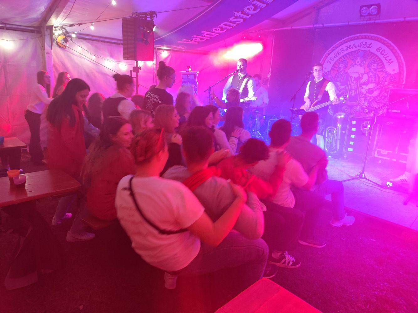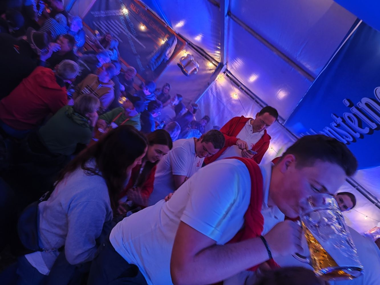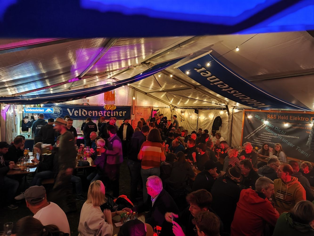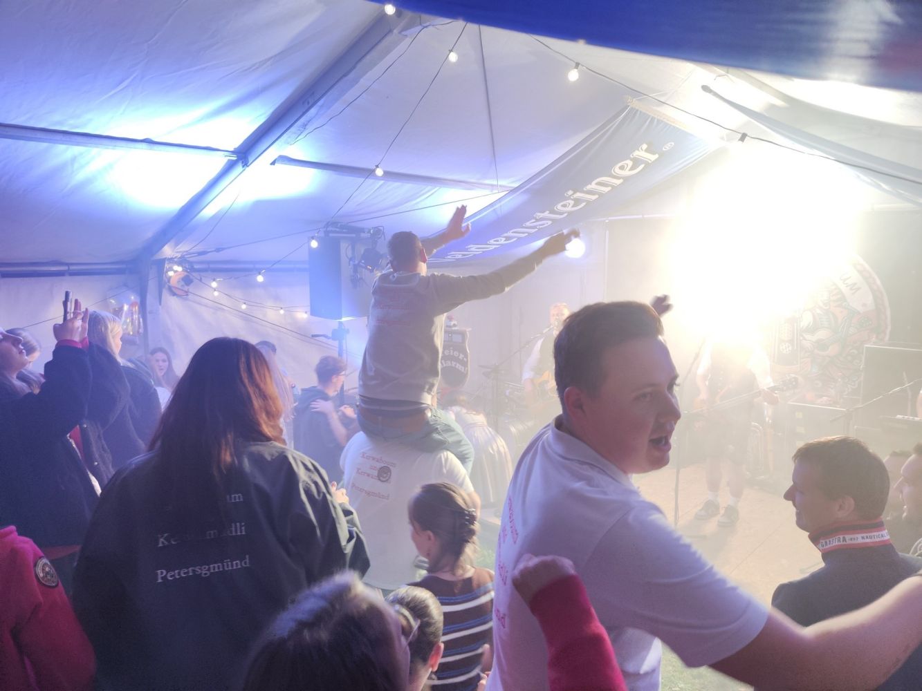 Wir haben uns alle erst einmal mit Essen und den ersten Getränken versorgt. Anschließend wurde von uns das Festzelt aufgesucht, und umgehend die ersten drei Tische vor der Musik belegt. Das Zelt füllte sich anschießend zusehends bis auf den letzten Platz.