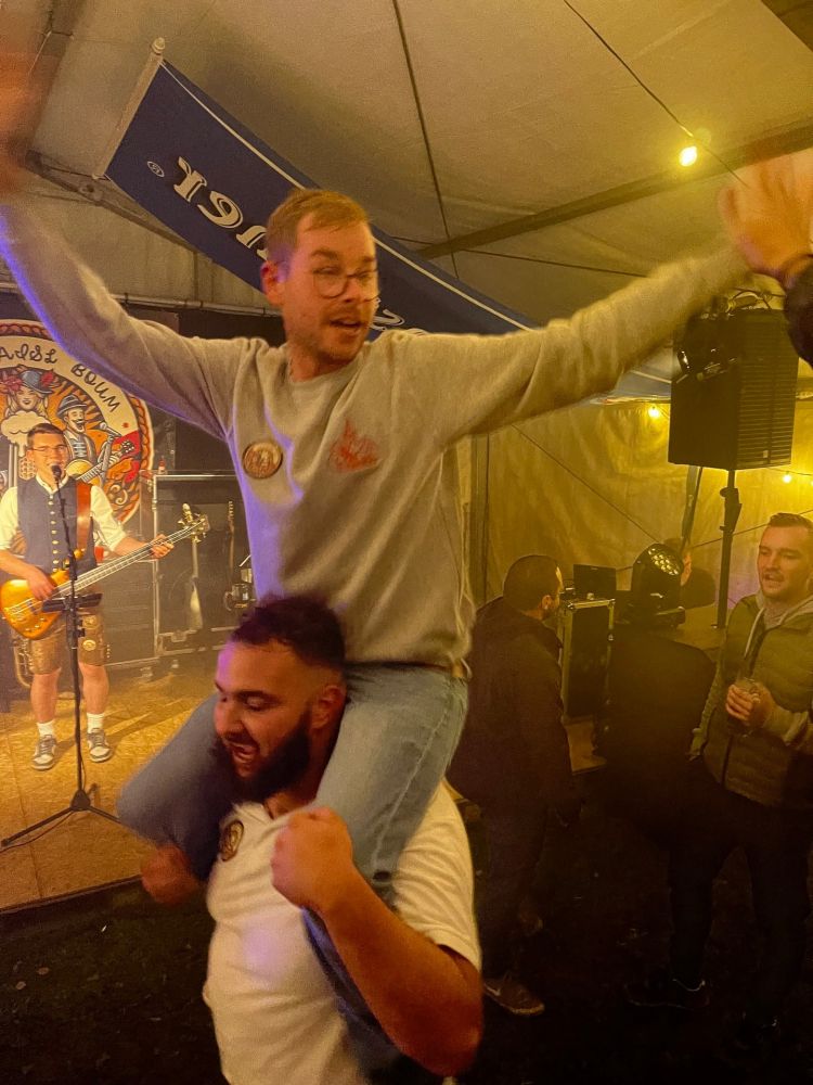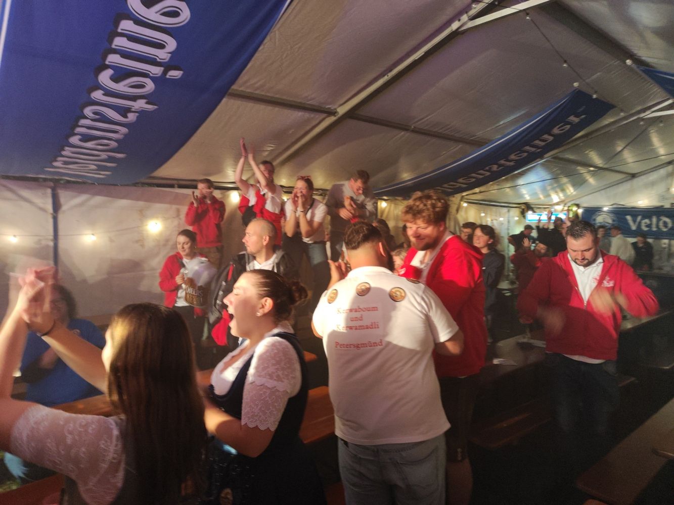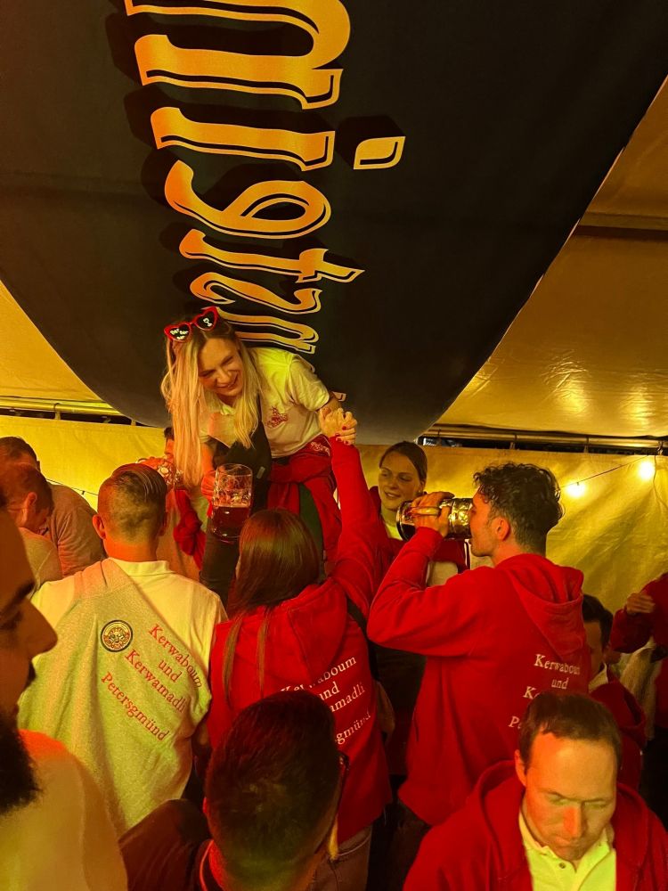 Wir hatten alle Riesenspaß und haben mit der der Polonäse durchs Zelt und über den Kirwaplatz, der Fahrt mit dem „Bob“ auf der Bierbank oder mit anderen Aktivitäten uns und das ganze restliche Zelt mitgenommen.